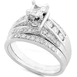 1.00ctw Princess & Round Diamond Wedding Rings Set in 14kt White Gold (HI/I1) (Jewelry)