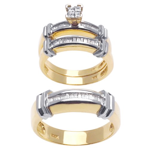 18K Two Tone Yellow and White Gold Diamond Trios Wedding Band Review