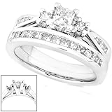 4/5ctw Princess & Round Brilliant Diamond Wedding Ring Set in 14k White Gold (HI/I1) (Jewelry)
