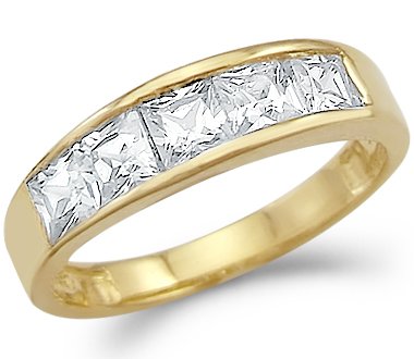 Best Deal Today @ Amazon Check Price Solid 14k Gold Princess Cut Channel Set CZ Cubic Zirconia Wedding Band Ring 2.0 ct Now!